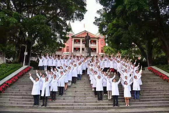随后,他们来到孙中山学医铜像前,用队形拼出巨大的数字“70”。以手抚心,目光坚毅,诠释医者的神圣誓言;高举双臂,仰望天空,传递中华儿女由衷的喜悦。