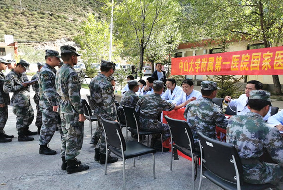 由于边坝县交通不便,部队医疗保障受到很大限制。国家医疗队的到来,得到了驻地官兵们的热烈欢迎。来自附属第一医院心内科、神经科、风湿科、骨科等专科医生为该部指战员们进行了认真体检。