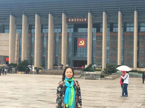 王兰平在南湖革命纪念馆前留影