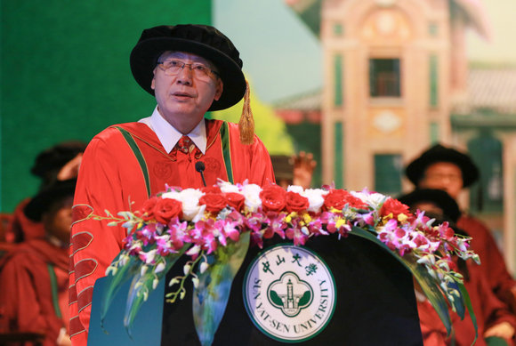 今年,我们有超过55%的本科生选择继续深造,“学在中大,追求卓越”的校风学风逐渐浓厚起来。我很高兴看到,被喻为“追风少年”的大气科学学院周明颢同学、立志投身祖国海洋工程事业的海洋科学学院林振镇同学、积极参加国家重大研究项目的岭南学院王瀚洋同学等,一批学子在学习过程中充分感受学术魅力、享受学术乐趣,并展现出勇于超越,争当一流的优秀品质。我也很高兴看到,获得全国年度人物的政治与公共事务管理学院卜熙同学、积极从事公益活动的国际翻译学院林莎莎同学、以及将赴西藏、云南支教的第19届研究生支教团17名毕业生,一批学子关心社会、乐于奉献、敢于担当,体现出中大学子浓浓的家国情怀。我校今年投身国家西部发展事业的毕业生有300余人,母校为此而骄傲,让我们一起为他们鼓掌!