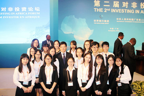 2016年9月7日,在第二届对非投资论坛上,广东省委常委、副省长徐少华看望了我校国际翻译学院“青马”公益服务队志愿者们。