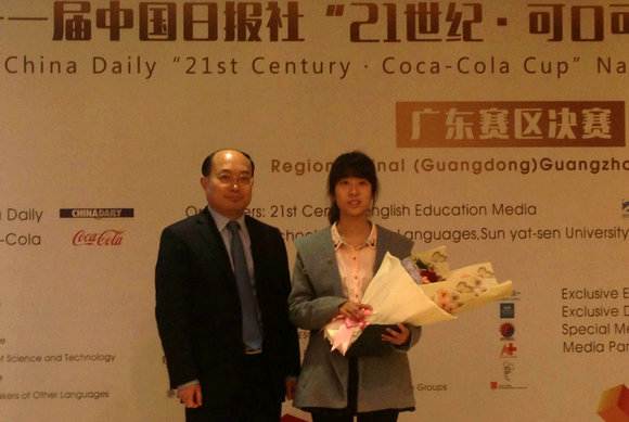 12月12日,第二十一届中国日报社“21世纪·可口可乐杯”全国英语演讲比赛广东赛区决赛在我校外国语学院举行。我校外国语学院陈洁薇、广东嘉应学院刘东、广州中医药大学方华风分别摘得冠、亚、季军,将代表广东省参加全国半决赛。