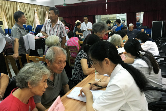 为进一步推进“两学一做”学习教育常态化制度化,7月4日下午,南校园门诊部支部携手学校离退休处,在南校园老人活动中心成功举办“两学一做”系列党日活动之“南校园离退休教工体检报告解读及义诊活动”。活动由支部书记刘晓红,门诊部主任陈唐义、副主任陈锡龙带队,南校园门诊部医、护、药人员共计15人参加了本次活动。