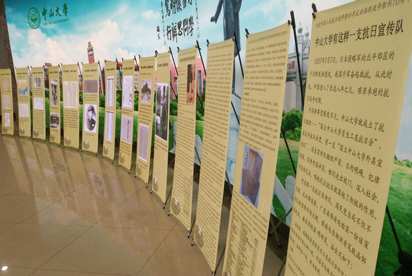 东校区行政楼会议中心大厅整齐地摆放起一排排展架,“铭记历史·珍视和平·继往开来”中大抗战史图说活动拉开序幕