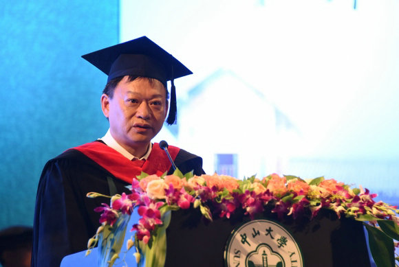 秦小军校友在学位授予仪式上演讲(金凤 刘文韬 摄)