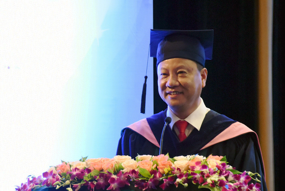 陈建华校友在学位授予仪式上演讲(刘嘉 摄)