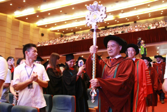 管理学院的毛蕴诗教授,已经是第九年执权杖了。问到感受,毛蕴诗教授表示,在这么庄严的场合执权杖入场,是一件很神圣的事情。他说,有毕业的学生曾告诉他,在典礼上看着老师举着权杖入场,当时就感动得哭了。