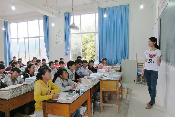 宋嘉颖在凤庆县鲁史中给学生上英语课