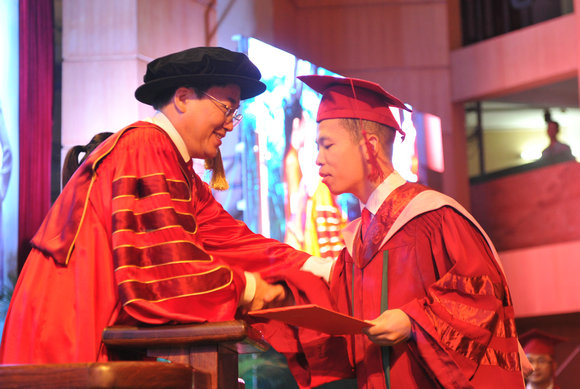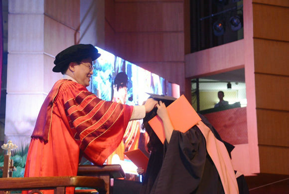 24日,梁銶琚内举行了四场仪式,中国语言文学系、历史学系、哲学系、博雅学院、亚太研究院、港澳珠三角研究中心、法学院、教育学院、社会科学教育学院、心理学系、管理学院、传播与设计学院的毕业生,在庄严的典礼中接受洗礼,整装启航。