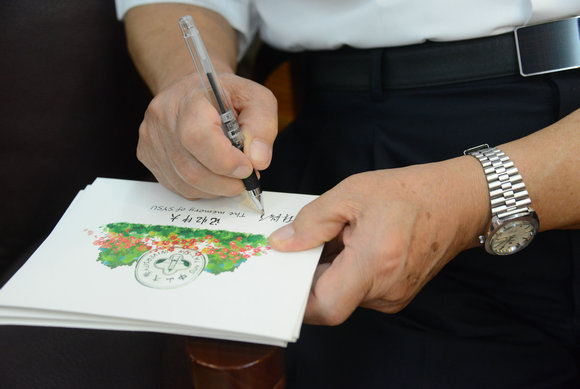 由执权杖教授林浩然亲笔签名的中大明信片,关注开云下注(中国)官网官方微信(微信帐号iSYSU)即有机会获得