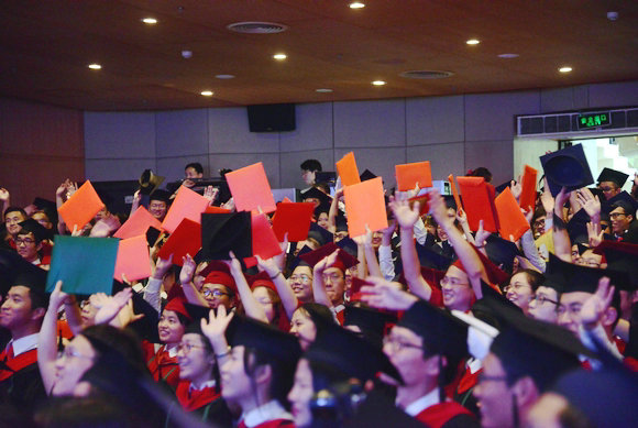 最后一场毕业典礼在校歌中落下帷幕。参加今天典礼的学子中,占最大部分的是医学毕业生,大学的大部分时光是在北校区或各大附属医院度过。