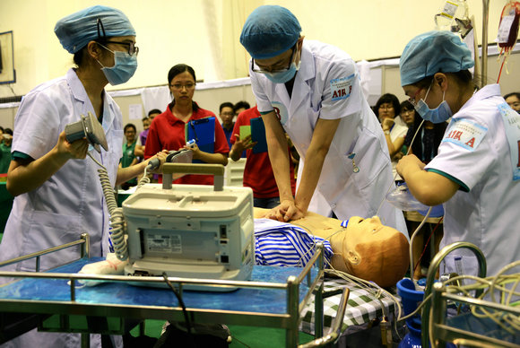 选手们在高度仿真的“模拟人”病例上进行操作