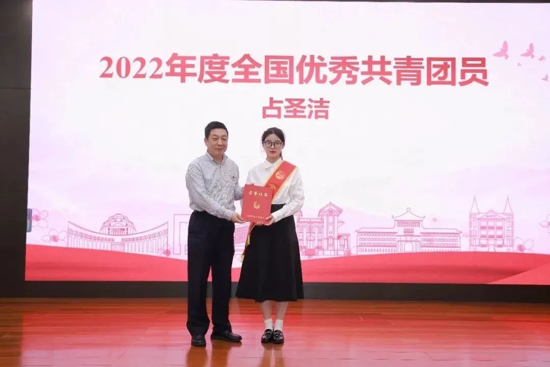 校党委副书记余敏斌为全国五四红旗团委、全国优秀共青团员颁奖