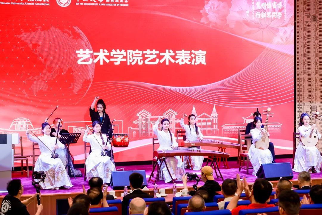 学术讲座后,艺术学院学生为校友们带来了精彩的民乐合奏表演《敦煌》,不仅展示了艺术学院学生的专业素养,也为大会增添了轻松愉悦的气氛。
