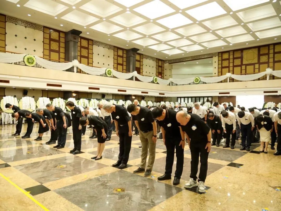 在深沉悠扬的钢琴曲《我的祖国》中,与会人员追忆夏老波澜壮阔的一生,逐一瞻仰夏书章同志遗容作最后告别,并对家属表达深切慰问。