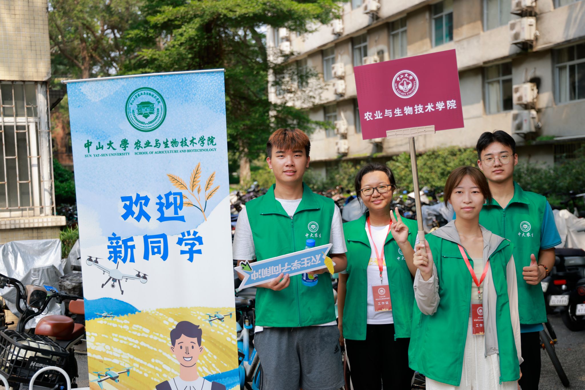 学校相关职能部门联合上阵,为大家提供贴心服务。保卫处为全体新生准备了文创帆布袋和校园安全指南,在永芳堂、熊德龙设置安全宣传点,欢迎新同学的同时开展安全教育;总务部与物业人员翻修寝室、清洁打扫,为校园的新住户们营造舒适整洁的居住环境;医院管理处统筹孙逸仙纪念医院的医护人员随时待命,为迎新工作做好安全保障;网络与信息中心默默付出,企业微信报到、逸仙码人脸识别,家长入校申请、校园电子地图等方便快捷的程序,让新生体验感满满。