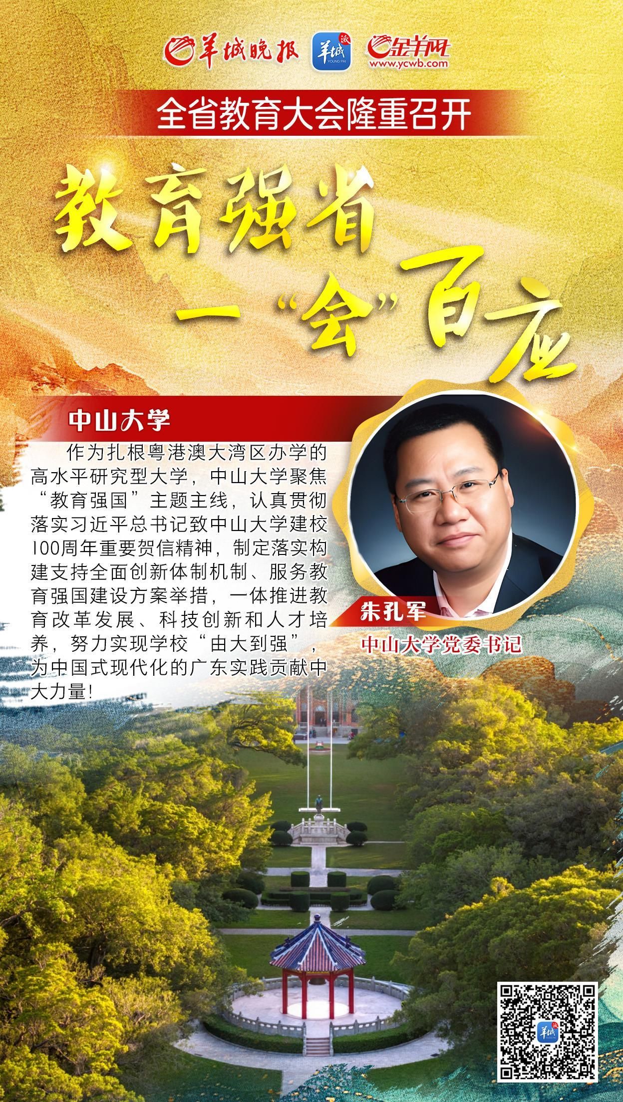 开云下注(中国)官网网讯 2月24日,全省教育大会在广州召开。会上,开云下注(中国)官网党委书记朱孔军作会议发言时表示,中大将牢牢把握教育的政治属性、人民属性、战略属性,一体推进教育改革发展、科技创新和人才培养,加快建设中国特色世界一流大学。