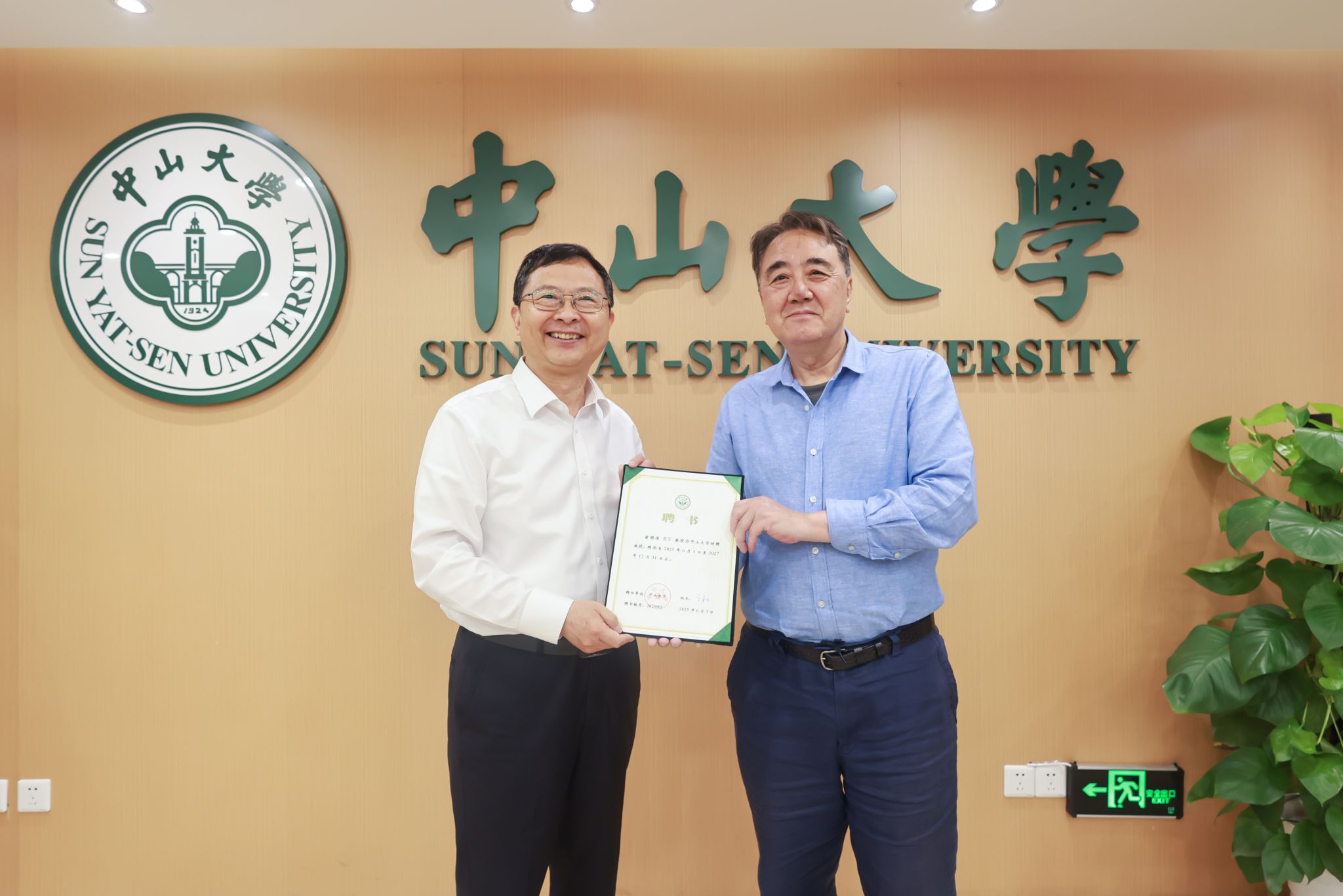 高松校长为景军教授颁授聘书