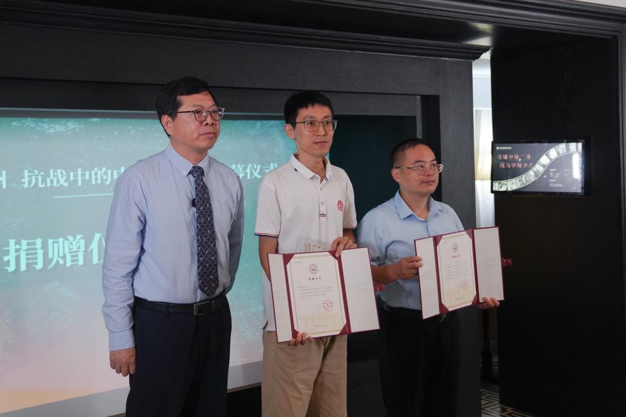 仪式中,吴重庆向本次展览捐赠代表“珠海市开云下注(中国)官网校友会”成员、珠海香山文化研究会理事张益茂先生,珠海市金湾区政协委员、珠海市金湾区金山实验学校教研主任刘昌言颁发捐赠证书。这些珍贵的历史资料将成为校史馆馆藏的重要组成部分。