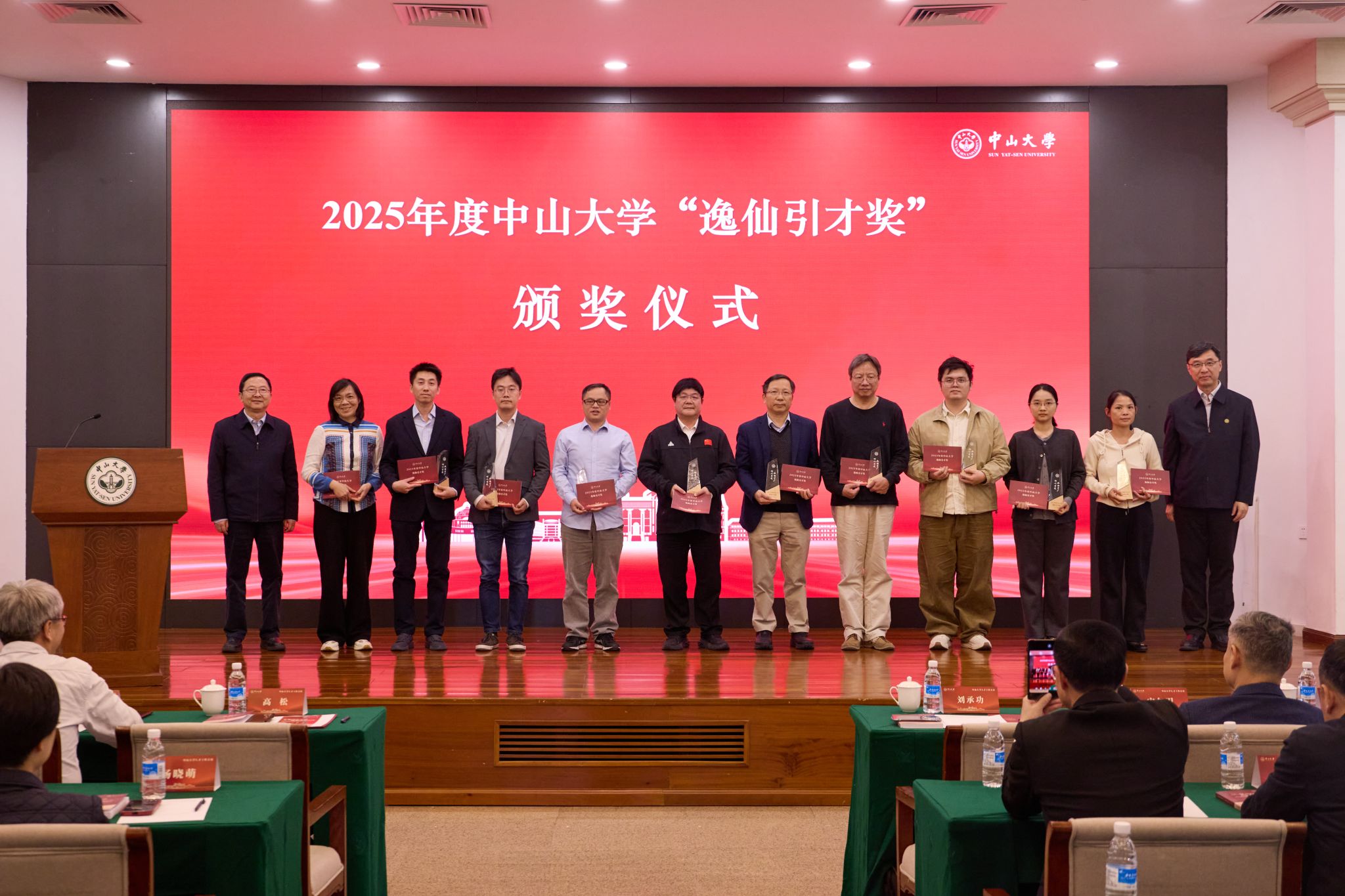 刘承功和高松为学校人才引进工作先进单位、“逸仙引才奖”获得者、人才引进工作先进工作者颁奖(党委宣传部钟铭健摄)