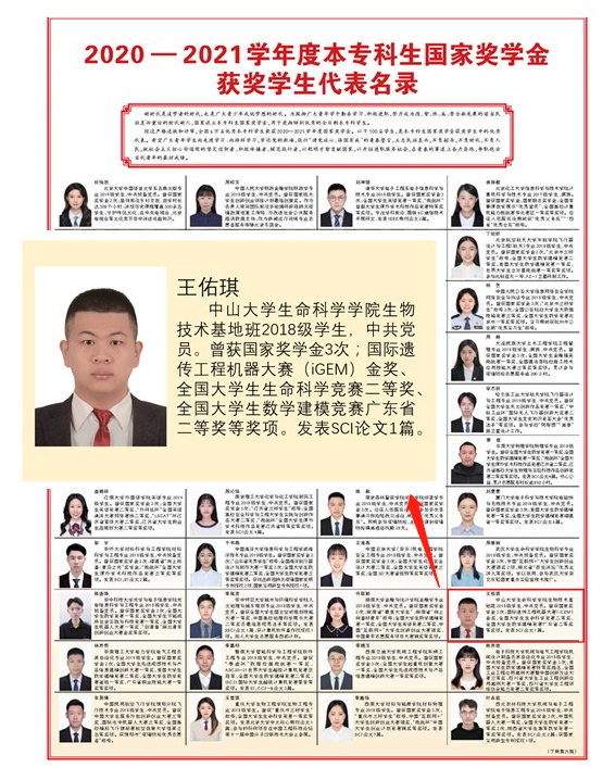 开云下注(中国)官网网广州5月6日电(通讯员林仪)2022年5月4日,人民日报发布《2020—2021学年度本专科生国家奖学金获奖学生代表名录》(以下简称《名录》),我校王佑琪同学名列其中。