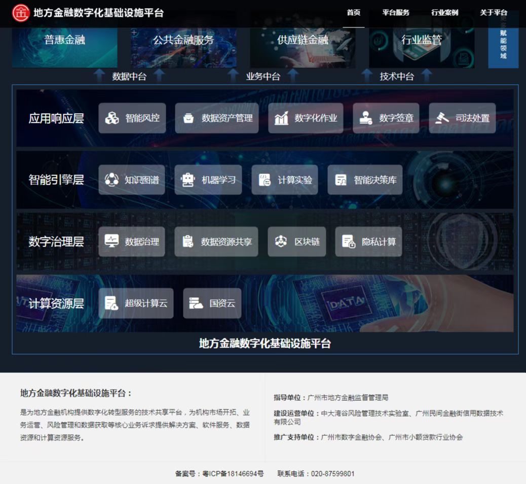 中大湾谷风险管理技术实验室牵头研发的广州地方金融数字化基础设施平台(来源:管理学院)