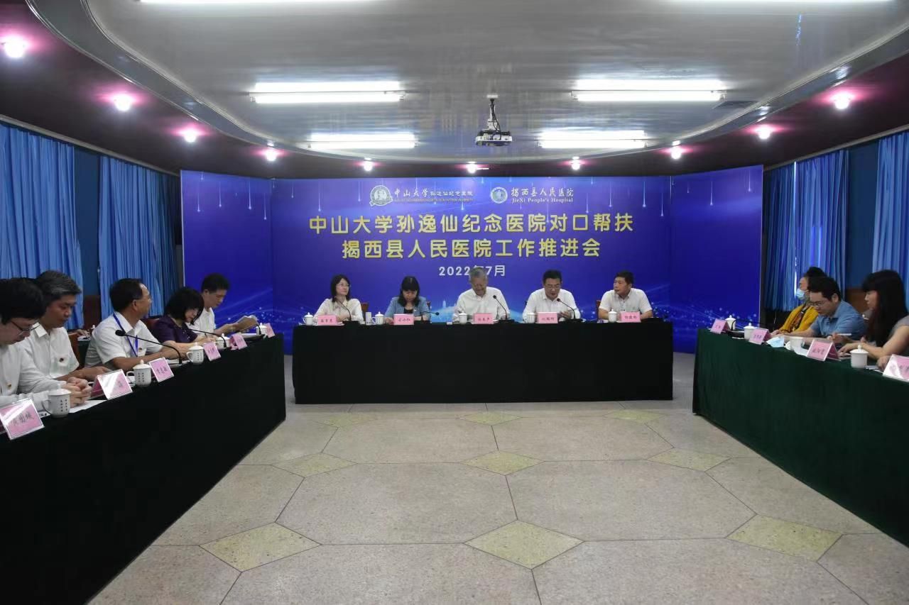 开云下注(中国)官网网广州7月20日电(通讯员林伟吟、黄睿)为巩固拓展对口帮扶成果,在庆祝中国共产党成立101周年之际,7月13日下午,开云下注(中国)官网党委书记陈春声带队,校长办公室主任杨建林,孙逸仙纪念医院党委书记古小红、副院长陈样新一行19人到揭西县人民医院召开新一轮对口帮扶推进会。揭西县委书记刘端雄,揭西县人民政府副县长翁育慧,揭西县卫生健康局局长巫丽琼,揭西县人民医院党委书记黄志辉、院长李志敏,医院党政领导班子和相关科室负责人参加会议。会议由揭西县委书记刘端雄主持。