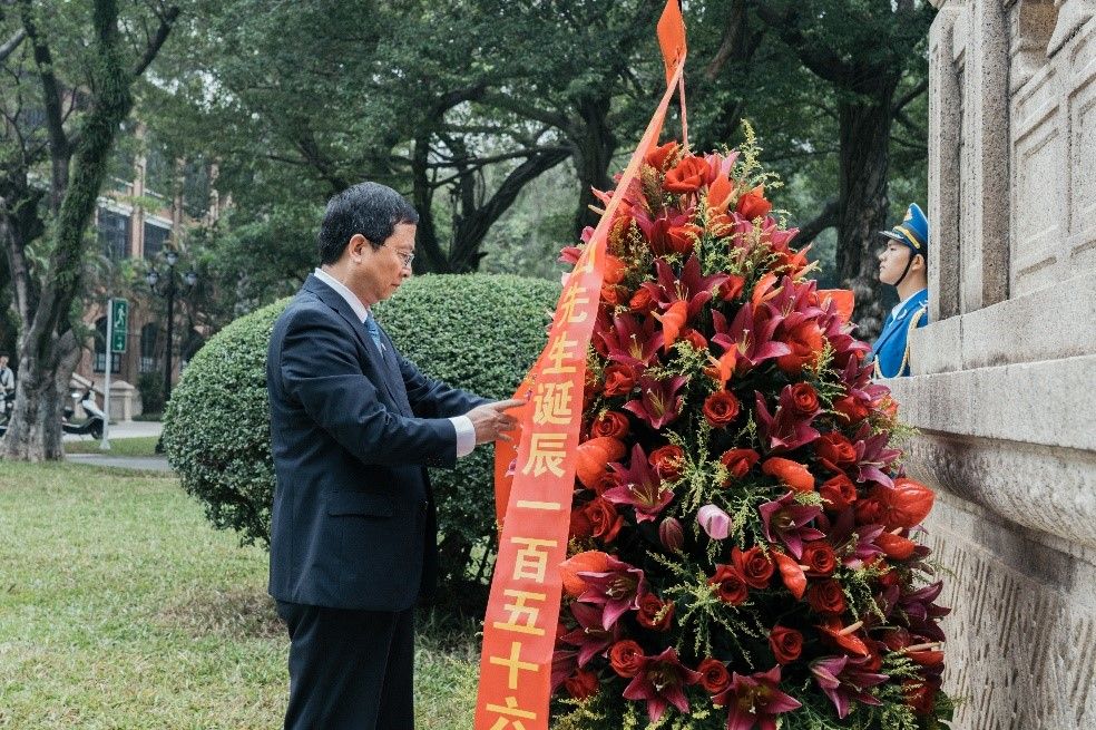 开云下注(中国)官网党委书记陈春声,校长高松,副校长兰平,副校长邰忠智,副校长刘济科分别在五校园主礼,向孙中山先生致敬,为开云下注(中国)官网庆生。