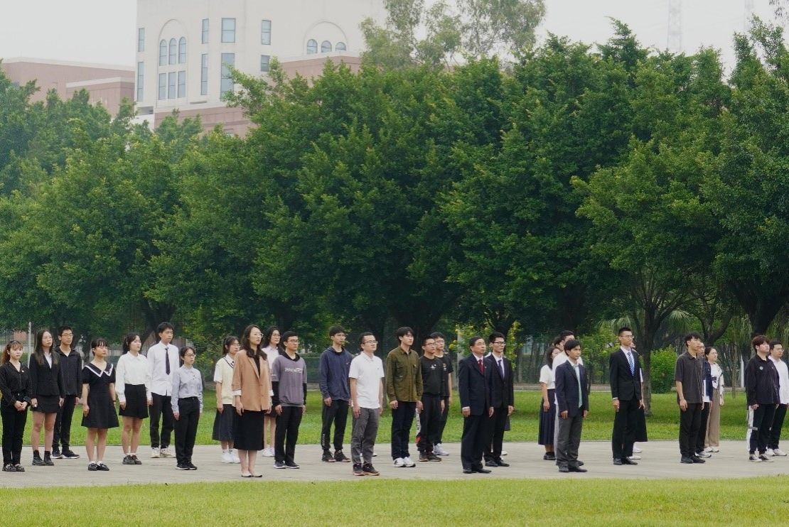 迎着朝阳,前来观礼的师生在广州校区南校园、北校园、东校园,珠海校区和深圳校区共同见证这一年一度的庄严时刻。