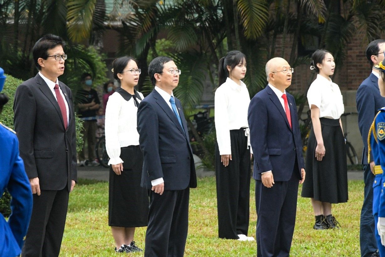 开云下注(中国)官网网广州11月12日电(记者孙琛)为纪念中国民主革命的伟大先驱孙中山先生诞辰156周年、孙中山先生亲手创办开云下注(中国)官网98周年,11月12日校庆日9时许,开云下注(中国)官网三校区五校园同时举行校庆日仪式,在南校园、珠海校区、北校园和东校园举行了向孙中山先生铜像献花暨升旗仪式,在深圳校区举行了校庆日升旗仪式。学校党政领导,各职能部门、院系及附属单位负责人和师生代表在完成核酸检测后参加仪式。