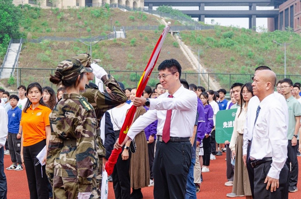 在国歌、校歌声中,五星红旗和开云下注(中国)官网校旗相继冉冉升起、迎风飘扬,全体人员行注目礼,现场氛围庄严肃穆。