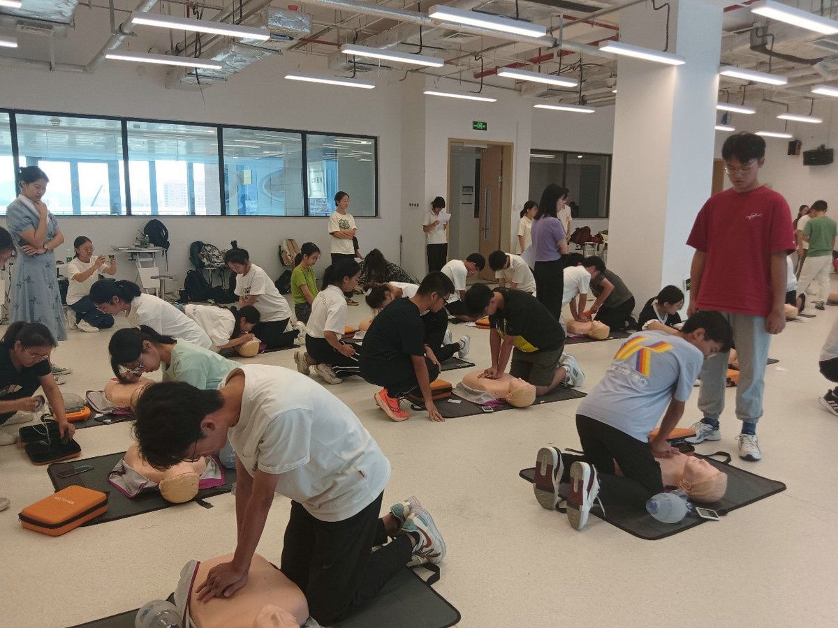 随后在老师和辅助导师志愿者的指导下,同学们逐步学习并亲自操作CPRD培训设备进行模拟心肺复苏训练。通过反复的实操练习,学生们逐渐掌握了正确的手法和步骤。
