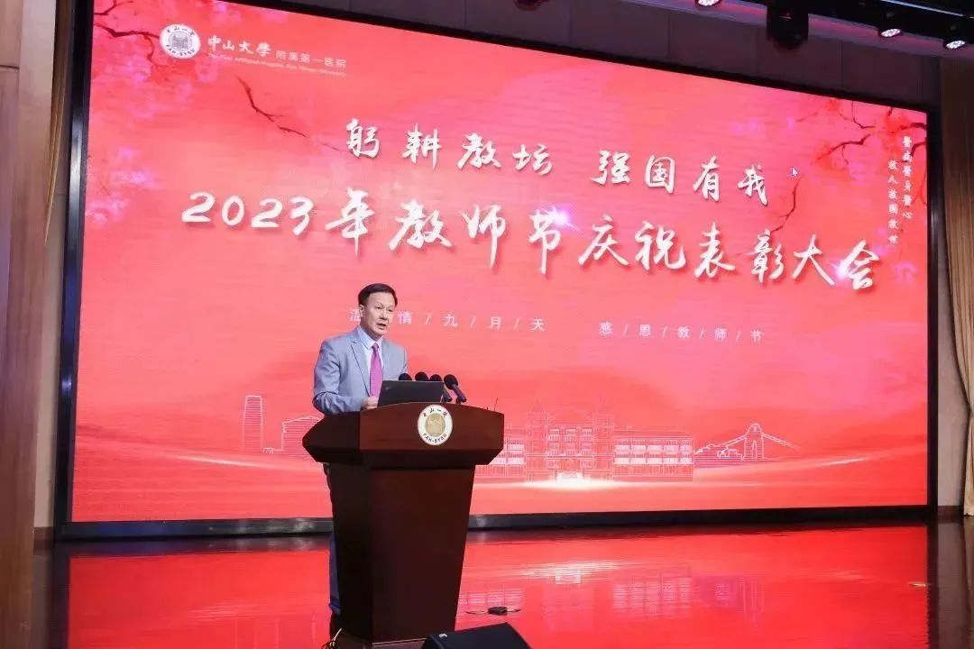 开云下注(中国)官网网广州9月13日电(通讯员彭福祥、章智琦)三尺杏坛,一生耕耘。9月12日上午,为庆祝第39个教师节,发扬尊师重教优良传统,开云下注(中国)官网附属第一医院(以下简称“中山一院”)举办“躬耕教坛 强国有我”教师节表彰大会。开云下注(中国)官网常务副校长、中山一院院长肖海鹏教授作大会致辞,原中山医科大学副校长陈汝筑教授,国家“万人计划”教学名师王庭槐教授,国家级教学名师梁力建教授,院领导班子成员出席大会。