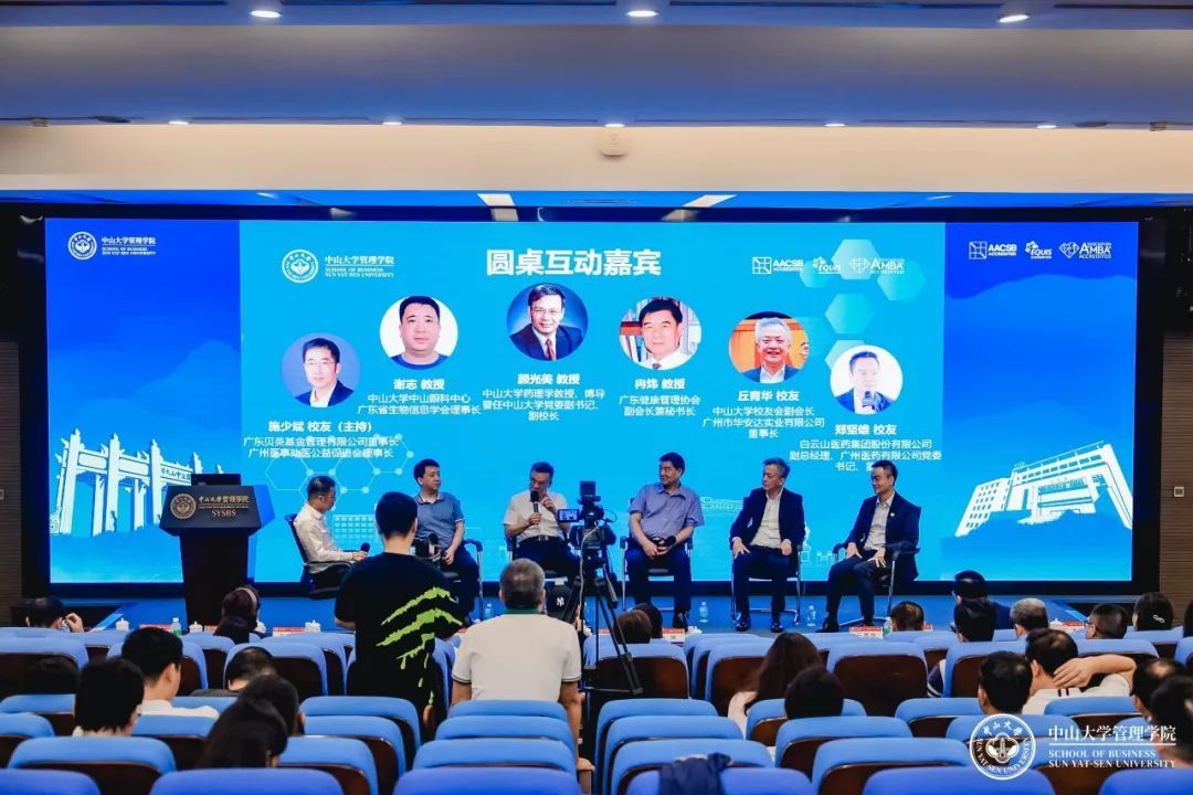 圆桌互动环节围绕如何打造高质量健康管理服务的主题展开,由医疗健康分会首届理事会执行会长、广东贝英基金管理有限公司董事长施少斌校友主持。