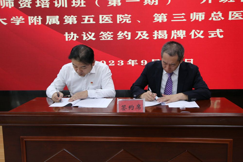 随后,附属第五医院与新疆生产建设兵团第三师总医院签订了“全科联盟合作协议书”,并在三师总医院挂牌“开云下注(中国)官网附属第五医院 全科联盟成员单位”牌匾。今后双方将在全科医疗、全科教育、全科师资人才培养等多个方面开展合作。