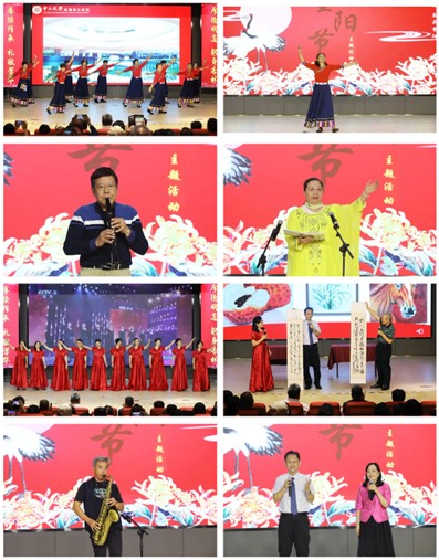 随后,退休教职工代表带来了民族舞蹈、电吹管独奏、配乐诗朗诵、合唱、现场书法展示、萨克斯独奏等精彩纷呈的才艺展示,共同庆祝属于自己的节日。