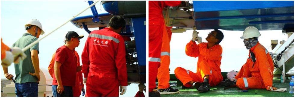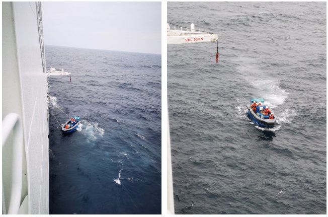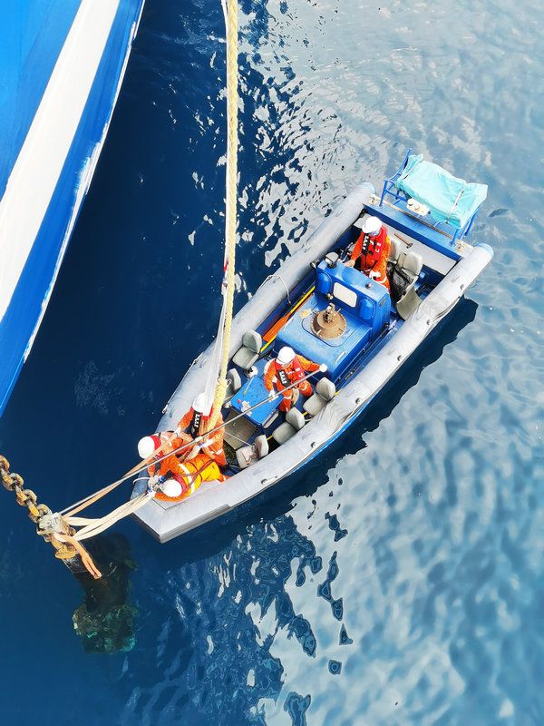 为了配合设备试验,船舶需要频繁抛锚和靠离港口,金德飞船长以高超的船舶指挥操控技术沉着应对,安全平稳地完成了10次靠港离泊、20次以上的抛起锚操作。并首次在非母港零缺陷通过海事局开展的船舶安全检查。海试设备时常需要定点回收作业,甲板、机舱和探测部人员组成分队,队员之间紧密配合,乘坐工作艇脱离母船搏击风浪,共完成15次定点回收作业,作业成功率100%,创下了单航程工作艇作业次数记录。