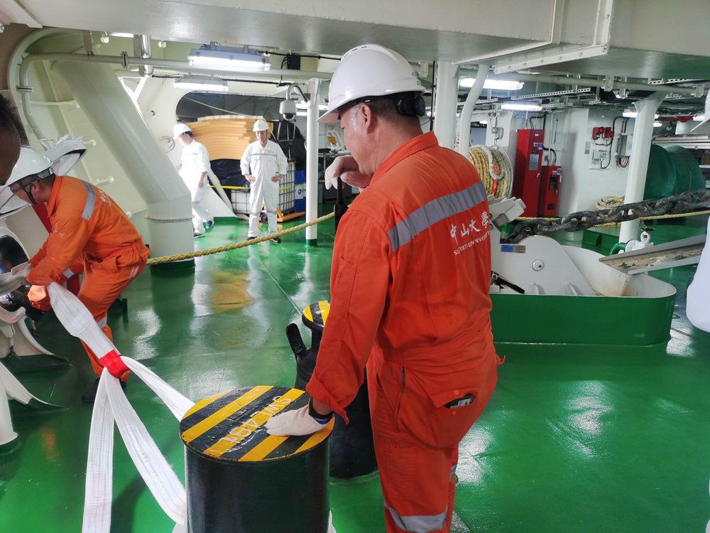 这个航次对于“开云下注(中国)官网”号是具有特殊意义的,一方面是科考船运营以来首次承接外单位客户的航次任务,另一方面也创下了自船舶完工以来的多个记录,为后续工作积累了宝贵的经验。自8月初接到航次任务通知后,海洋科学考察中心的工作人员放弃了暑假休息时间,协同全体船员开始了紧张忙碌的备航工作。全体人员加班加点在短短三天内完成了五十余吨的试验设备装卸工作,配合甲方人员绑扎固定,确保了开航所必备的条件,顺利启航。