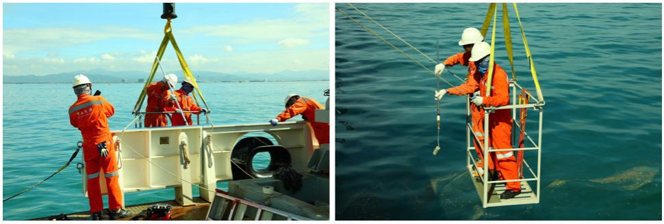 最惊险的是在一次设备试验过程中,突遇8级大风,阵风9级,海试设备失去动力,在风力略微减小至7级风、海浪达到3.5米的恶劣天气海况下,配合甲方下放工作艇进行定点回收,经过5个小时艰苦配合,克服重重困难,最终成功将设备回收上船,避免了巨大的财产损失。