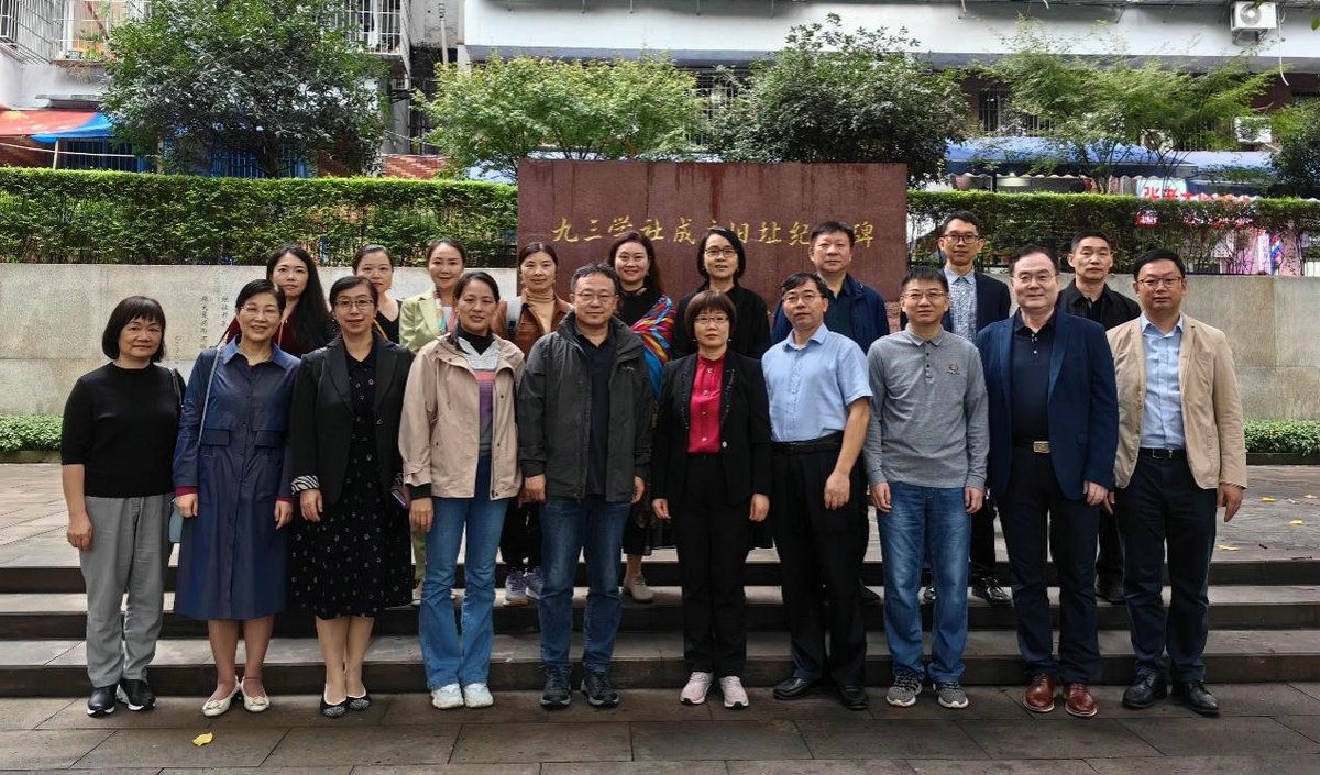 在九三学社成立旧址纪念碑前合影