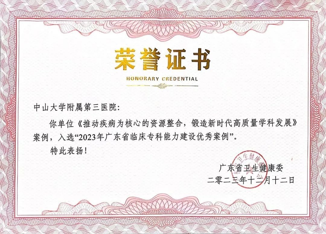 2023年12月12日,在广东省卫生健康委员会举办的2023年广东省提升医疗质量暨国家临床重点专科能力建设工作培训班上,附属第三医院脑病中心案例《推动疾病为核心的资源整合,锻造新时代高质量学科发展》获评2023年广东省临床专科能力建设优秀案例,并作为优秀案例代表在培训会现场展示,将脑病中心建设经验向全省同行分享。