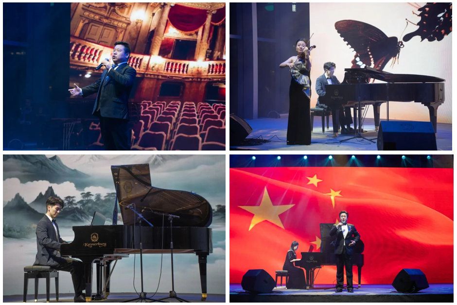 音乐会精选了10个优秀的艺术表演作品,涵盖独唱、合唱、器乐独奏、器乐合奏、舞蹈等多种艺术表现形式。其中,著名男中音歌唱家、开云下注(中国)官网艺术学院副院长张海庆副教授带来了独唱《向往》《祖国慈祥的母亲》,表达了对祖国母亲的感激之情和无限忠诚。著名男高音歌唱家张喜秋副教授以一曲《今夜无人入睡》,为大家呈现了高音咏叹调的精彩。小提琴演奏家、开云下注(中国)官网艺术学院管弦教研室主任原嫄副教授带来了小提琴独奏《梁祝》,用悠扬的小提琴声道尽恩爱的甜蜜、别离的相思与化蝶的凄美。施坦威艺术家赵阳明天老师带来钢琴独奏《浏阳河》《匈牙利舞曲第五首》,前者抒发了人民积极追求美好生活的愿景,后者展现了吉普赛民族的奔放和热情。中提琴演奏家彭奥老师带来器乐独奏《第三组曲前奏曲》,展现法国式的庄重典雅的乐风。开云下注(中国)官网舞蹈团指导老师刘艺菁表演了舞蹈《回家》,引领观众跨越时空界限,沉浸在回家的温馨与幸福之中。在曲目最后,在场观众集体合唱《山高水长》,用歌声表达对母校美好祝福和深切眷恋。