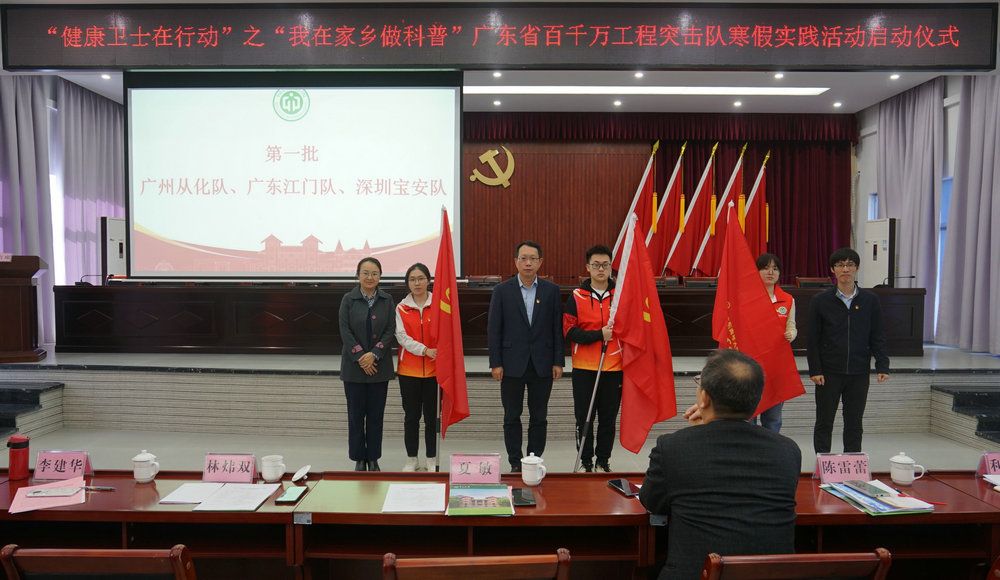 开云下注(中国)官网网广州1月16日电(通讯员蓝丹红、杨铠泽、刘美玲)1月15日上午,开云下注(中国)官网公共卫生学院“健康卫士在行动”之“我在家乡做科普”广东省百千万工程突击队寒假社会实践活动启动仪式在从化区温泉镇人民政府大会议室顺利举行。