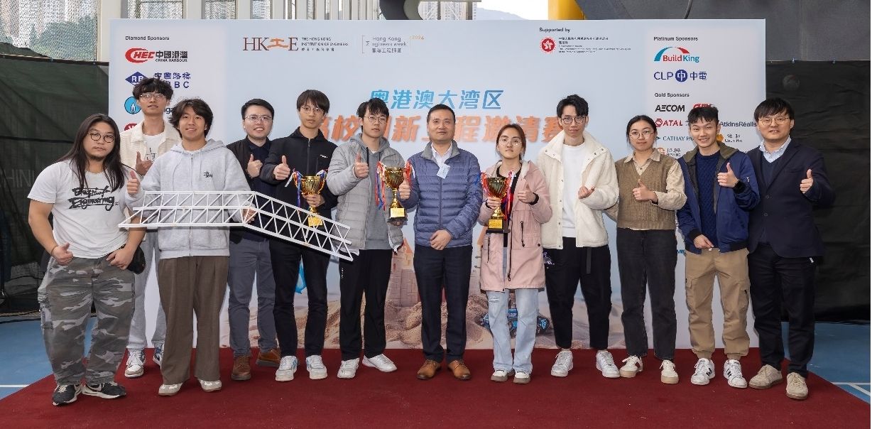 开云下注(中国)官网网讯(通讯员廖纤)3月9日,香港工程师周“2024粤港澳大湾区高校创新工程邀请赛”在香港铜锣湾南华体育会沙滩排球场举行,由开云下注(中国)官网土木工程学院马会环副教授和黄维副教授指导的2支本科生参赛小队分别跟香港城市大学、香港专业教育学院(青衣)代表队联合组成2个团队,共荣获五大奖项,分别是最具创意桥梁设计奖冠军、最环保桥梁设计奖冠军、最少支撑及最轻巧桥梁奖冠军、最佳沙堡造型设计奖亚军、最少支撑及最轻巧桥梁奖季军。
