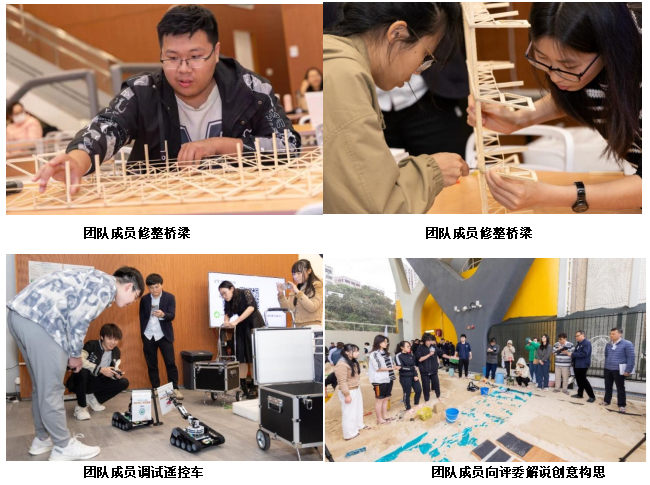 土木工程学院选派的2支参赛小队成员一共9人,分别是2021级本科生李舒彤、胡敏、袁古、郑锐、廖纤和2022级本科生陈年晋、石友志、夏豪阳、李信怡。他们集体备赛数周,挖掘细化赛题要求,对桥梁进行设计、加工、测试和优化,充分利用学院3D打印机、大学生创新创业活动室以及结构工作室等丰富资源。根据比赛规则和要求,经专家现场评审打分,2支参赛小队凭借巧妙的桥梁设计与精湛的加载技术荣获本次邀请赛桥梁项目近半数奖项。
