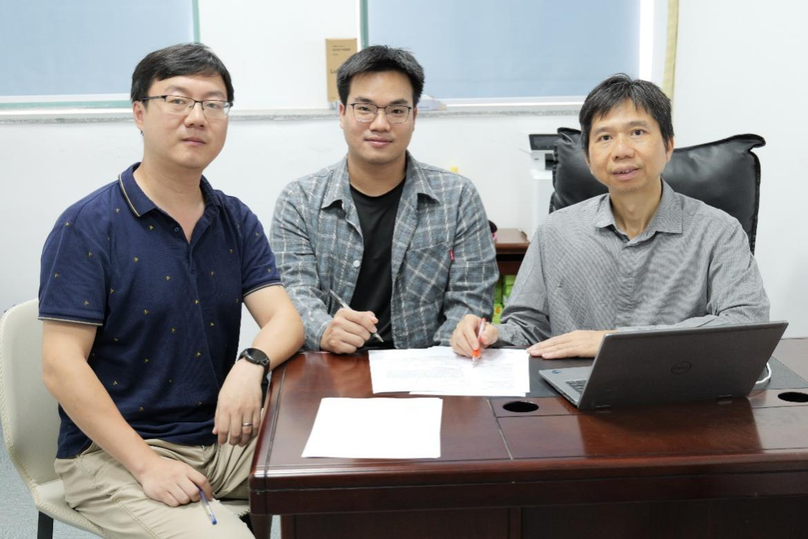 获奖论文作者,图中从右到左依次为:梁国华教授、柯智淇、杨楠副教授