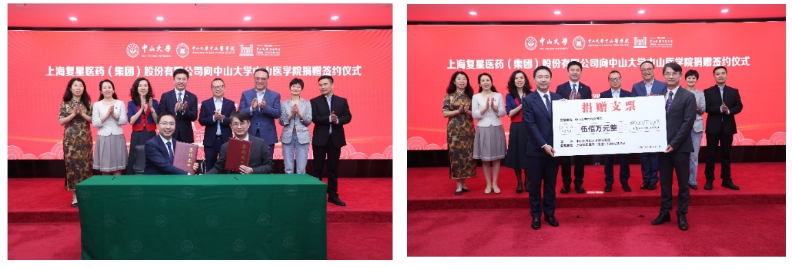 复星医药医学战略联盟部联席总经理叶少生先生和中山医学院副院长邓凯教授共同签署了捐赠协议。