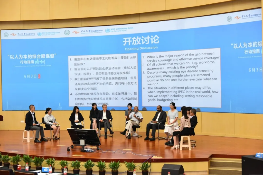 与会专家详细解析了《卫生体系中的眼保健:行动指南》及配套4本工具书的关键内容和实用工具,介绍了人工智能等技术的重大创新和突破如何助力眼健康。来自印度亚拉文医院、中山眼科中心以及澳大利亚眼科研究所的三位专家分别分享了来自印度、中国和澳大利亚的世界卫生组织合作中心在“以人为本的综合眼保健”方面的宝贵经验。随后,9位国内外专家上台就本次培训涉及的重点和难点问题展开讨论,并与台下学员热烈互动。