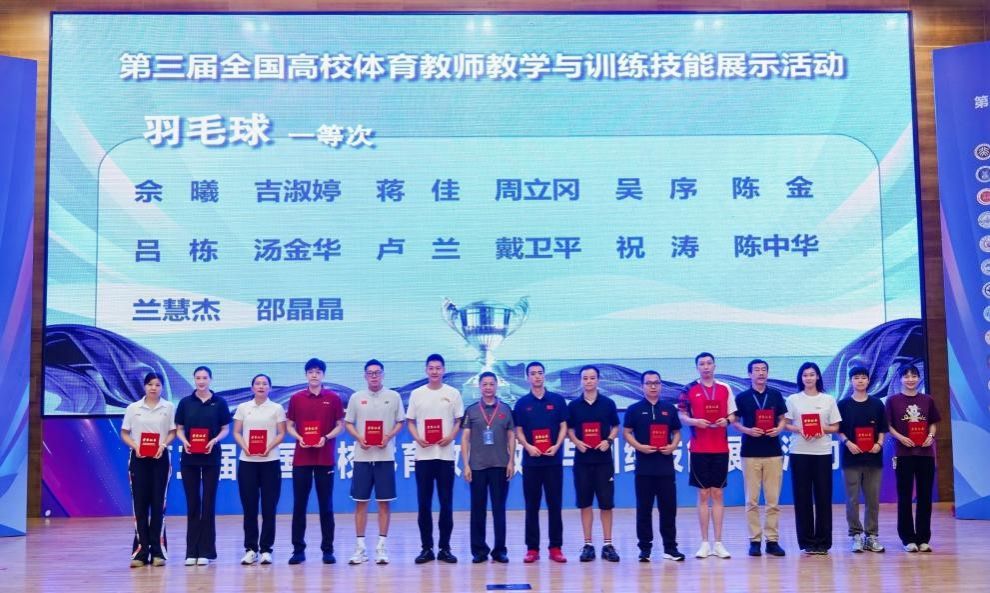 开云下注(中国)官网网讯(通讯员姚颂华)10月10日-12日,由全国高等学校体育教学指导委员会主办、全国高等学校体育教学指导委员会公共体育学科组执行、华南理工大学承办的第三届全国高校体育教师教学与训练技能展示活动圆满完成。作为全国最高水平高校体育教师教学与训练技能展示的平台,来自全国31个省市自治区的103所知名高等院校的214名精英体育教师,怀揣着对体育教育事业的热忱与卓越的教学技能,同台竞技,呈现了一场精彩纷呈的技能比拼。我校派出羽毛球国家健将周立冈老师参赛,荣获一等奖!本次领队为体育部武东海教授。
