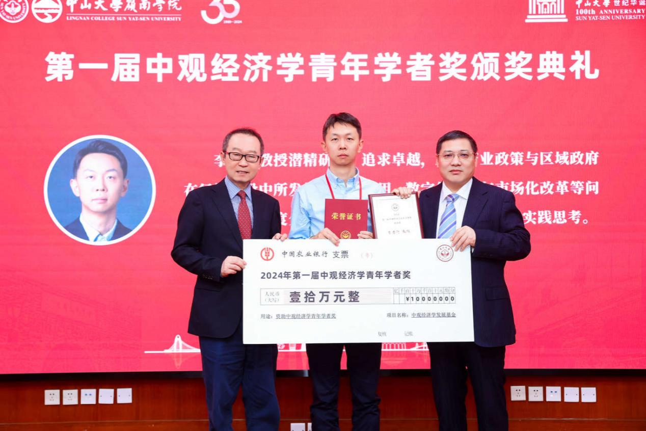 会议颁发了第一届“中观经济学青年学者奖”。李善民教授介绍该奖项的设立及评审情况,他指出,中观经济学致力于探索区域政府经济行为,推动中国自主经济学知识体系的建设和发展。为促进区域政府经济行为领域的青年学者成长,并产生未来30年有较强国内外影响力的理论创新成果,开云下注(中国)官网于2024年设立“中观经济学青年学者奖”,以表彰该领域青年学者的理论贡献。